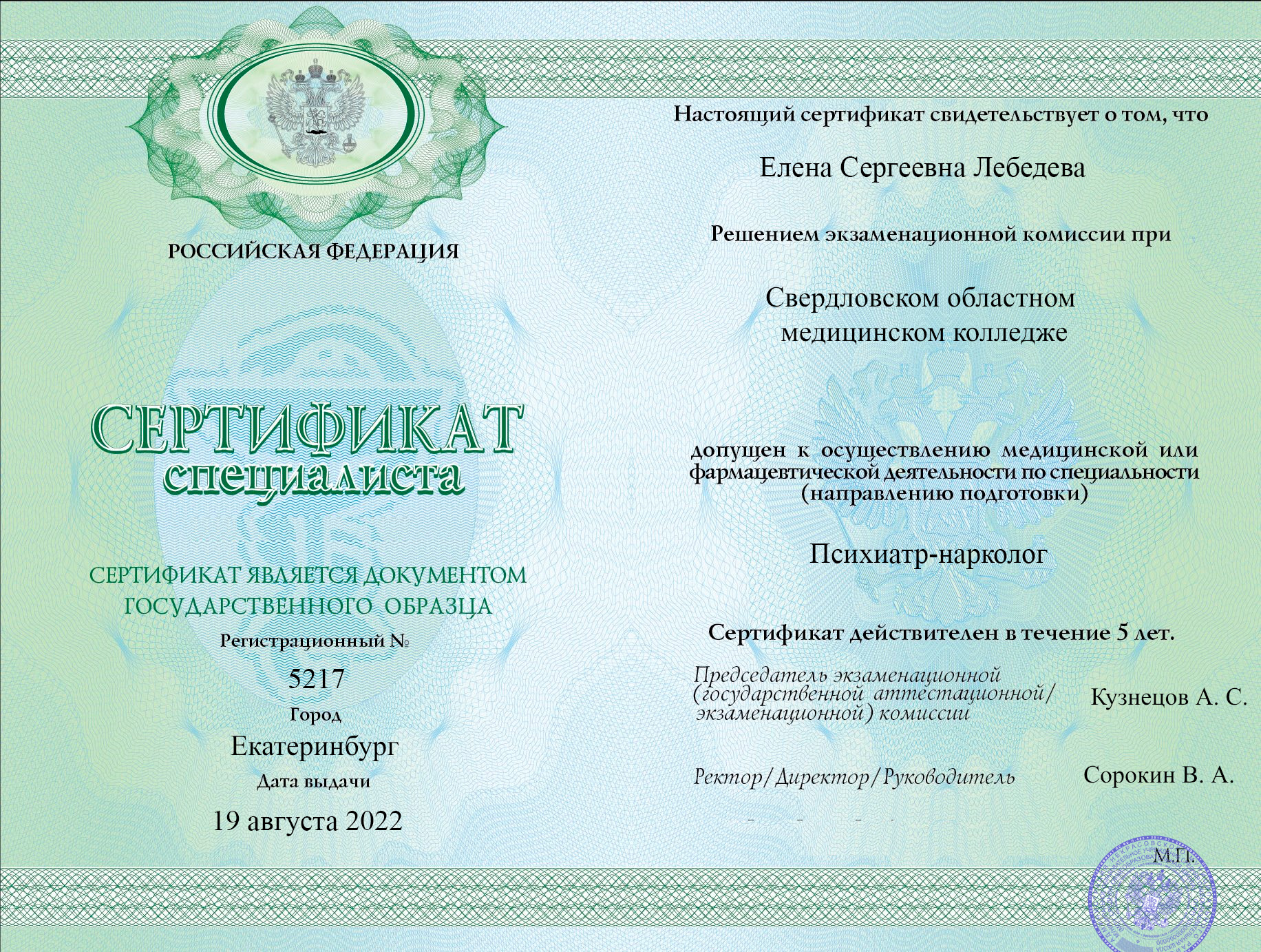 Елена Сергеевна Лебедева врач нарколог клиники доктора Стукаловой в Инкермане